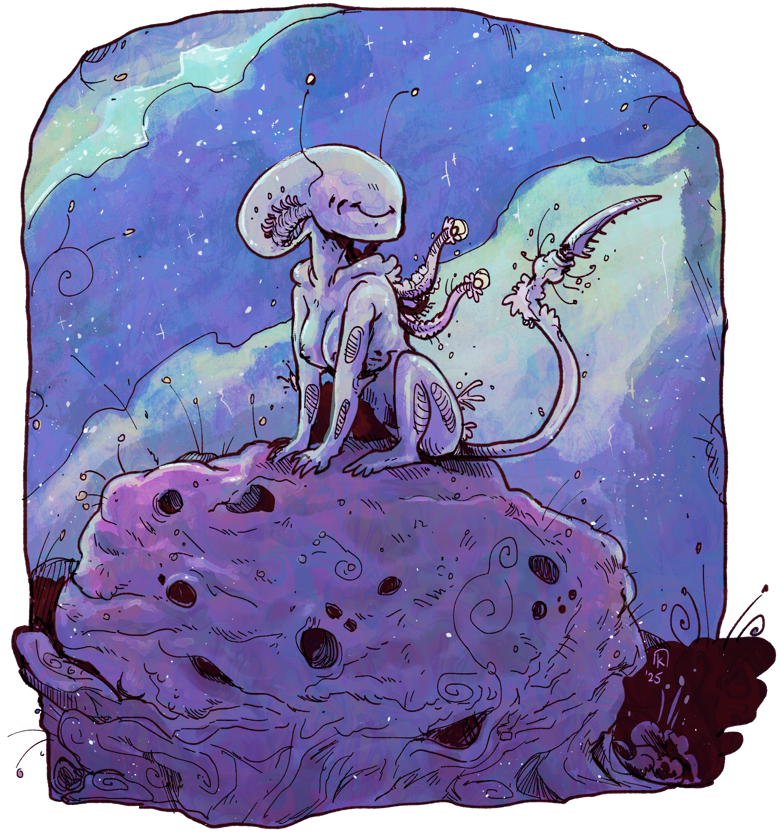 I'm Katicin, otherwise known as Weed. I draw furry-adjacent things, but any sort of creature is a welcome one. My special interests revolve around all kinds of fantasy, biology, ttrpgs, horror and comics. Besides digital illustration, I also dabble in other mediums such as traditional art, photography, animation and 3D sculpting every now and then. Education-wise I'm a soon to be new media art bachelor, but at heart I'm mainly an illustrator.