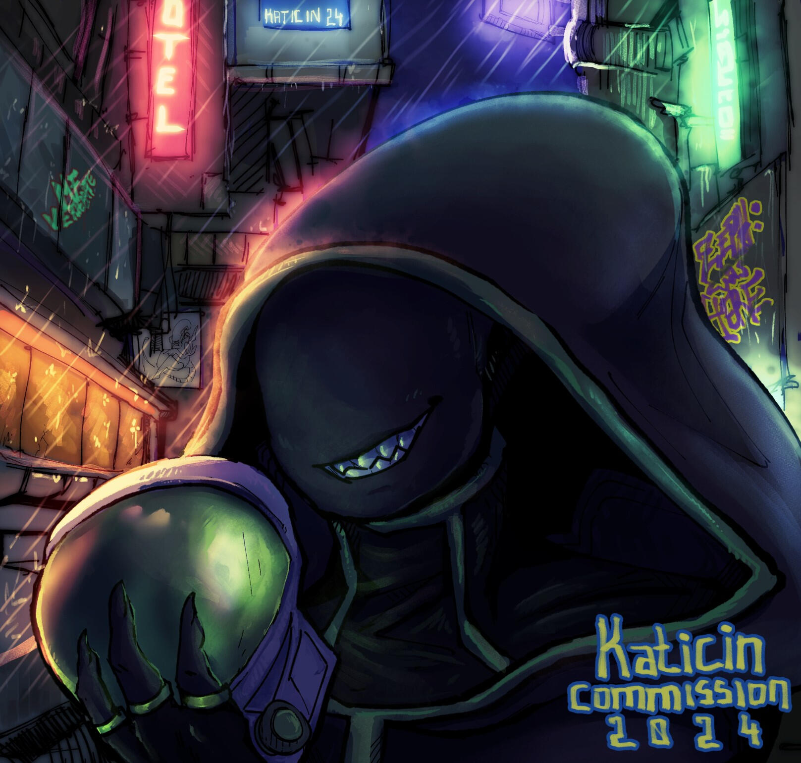 If for any reason I feel that I can't or won't work on a piece I have the right to decline.The client may not use the commission for resale purposes (selling the piece as stickers, prints, etc.), NFTs, anything blockchain related as well as AI training without my permission.Anyone breaching these terms of service will be denied further commission requests.